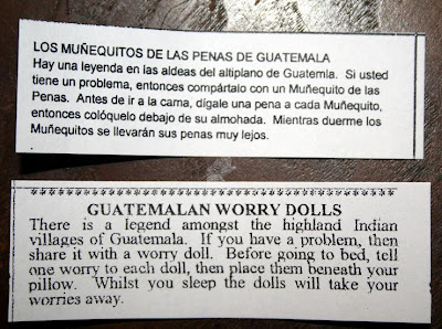 Hoje voltaram para mim...e com eles vieram outros, numa caixinha, directamente da Guatemala, pela mão da irmã da Cuca que esteve lá e trouxe uns para a Cuca e outros para mim. Tão queridas...! Muitos beijinhos para as duas e... "poucas preocupações"!