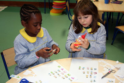 Sim, são as carinhas deles...no início do ano para marcar os cabides inventei isto...digitalizei as fotos deles da ficha da matrícula, recortei, colei e desenhei as roupinhas e o resto, levei ao paint para pintar e ficaram muito engraçados. Ontém lembrei-me que iam gostar de fazer aquela actividade com eles próprios e os amigos.