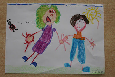 ResponderEliminarA bruxa boazinha andava sempre no Jardim do Parque Monchou (?). Um menino andava a brincar à bola e uma joaninha pousou numa planta ao pé da bruxa boazinha. Depois ela aspirou as bolas todas da joaninha. Enquanto o menino lançou um bola que caiu ao pé da bruxa. Depois ele foi buscar a bola e depois ela desaspirou as bolinhas para a cara dele. Depois ele foi brincar e toda a gente estava a rir-se e ele não percebia. Ele foi para casa e viu-se ao espelho e viu que tinha a cara cheia de bolinhas. Esfregou com sabão mas não saíram. Depois ele foi para a cama e tapou-se com tudo e os pais foram lá ter mas não disseram nada não queriam deixá-lo triste. Depois o pai disse "queres ir ao parque comigo?" e ele disse que não. Mas despois o pai convenceu-o a ir. Depois milhares de joaninhas pousaram nele. E ele viu que tinham todas 7 bolinhas como ele. E ele disse " alguém viu uma joaninha nua?". Todas responderam que não. Depois uma disse "sim eu vi uma joaninha toda nua". E ele disse " então procurem-na que amanhã vou aí ter". No outro dia ele foi lá ter, as joaninhas já lá estavam com a toda nua. Depois foram ter com a feiticeira e ela soprou outra vez às bolinhas. Mas ele não saiu da frente nem pôs a joaninha rapidamente. Então foram parar à testa dele. Depois ela soprou outra vez e depois pôs na joaninha rapidamente. E depois a toda nua ficou com as suas pintas!"