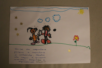 Comemos caju e amendoins e estavam mto bons. Os meninos de Moçambique escreveram nos cartas e nos também escrevemos.