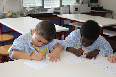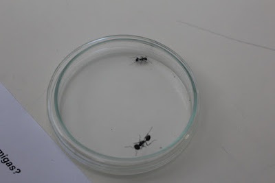 Aí mãe, hoje nós estivemos na escola da Joana, foi dia da Prof. Silvia fazer experiências! E hoje nós analisámos as formigas, elas são espertas fazer os formiceiros, ou lá o que são aqueles túneis que elas fazem. As formigas são tão trabalhadoras, tu nem sabes que elas andam dentro dos túneis, umas ficam à porta e outras carregam a comida para lá. As formigas têm uma cabeça com olhos boca e antenas, têm corpo dividido em 3 com 6 patas não são 4( nós achávamos que eram4 mas são 6) são pretas, castanhas ou vermelhas. Depois de as vermos bem nós voltámos a colocá-las na rua, não as matámos porque somos bonzinhos...só as queríamos ver na sala das experiências e descobrir coisas ...elas gostam de comer doces, são gulosas.